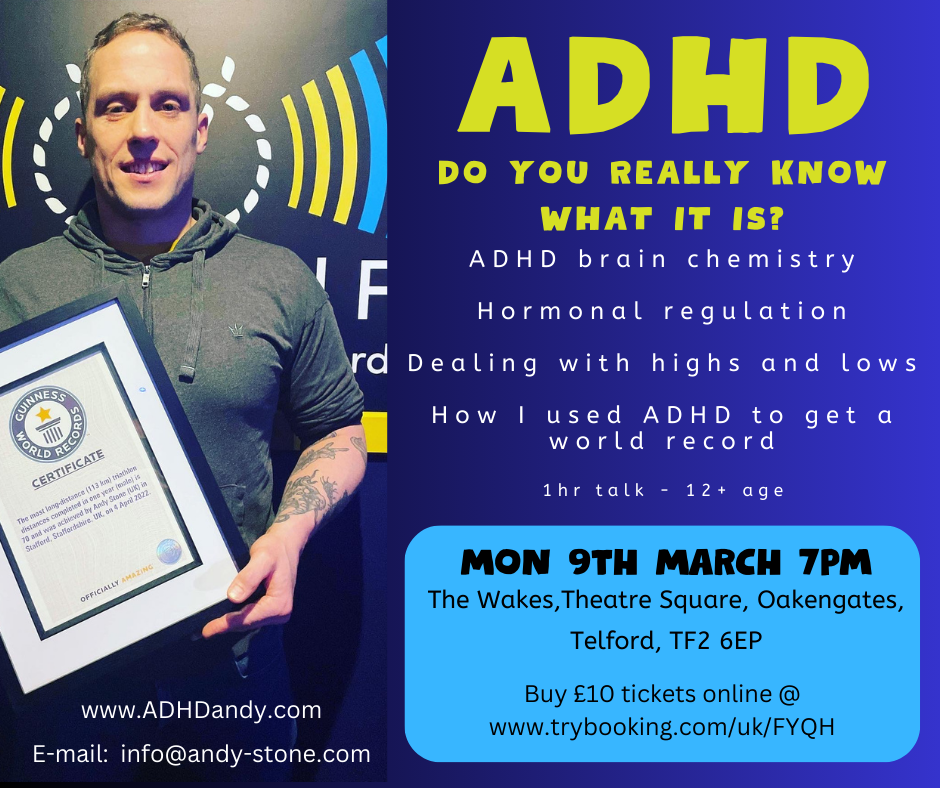 Guinness World Record holder Andy Stone, who has ADHD and autism and has overcome addiction and depression, is coming to The Wakes on Monday 9th March to share how understanding neurodiversity can transform lives.